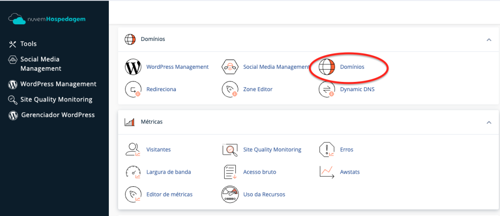 Com o domínio adicionado no cPanel, é necessário apontar o DNS para a Nuvem Hospedagem. Esse ajuste é feito no painel do registrador onde o domínio foi contratado — que pode ser o Registro.br, GoDaddy, Hostgator, entre outros.