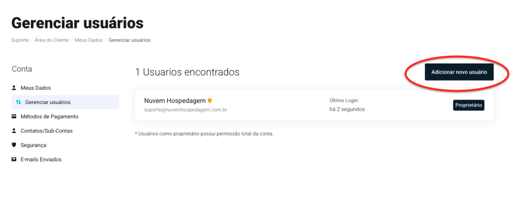 Você pode dar acesso à sua conta na Central de Cliente para outras pessoas — como um sócio, funcionário ou agência responsável pelo seu site. Cada usuário pode ter permissões específicas, limitando o que ele pode ver e fazer dentro da conta.